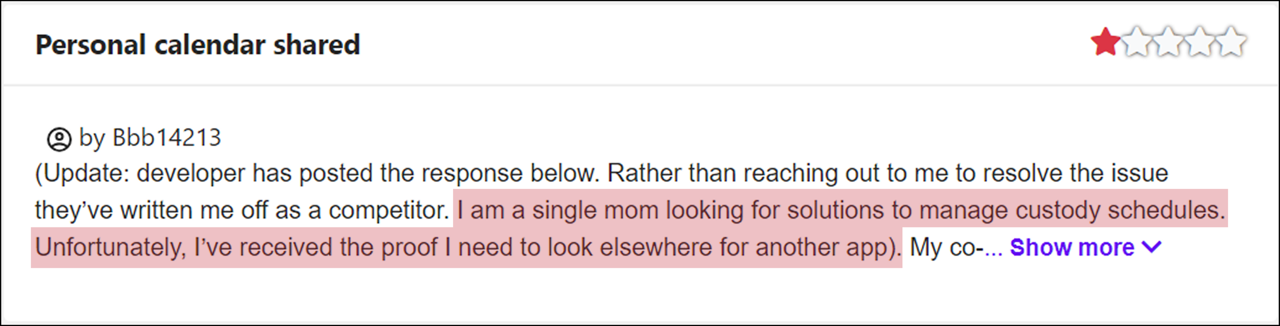 Having a calendar with inconveniences/bugs isn’t enough to make a user feel that it’s hard to use AND it isn’t enough to convince a user to stop using a certain co-parenting app all together.